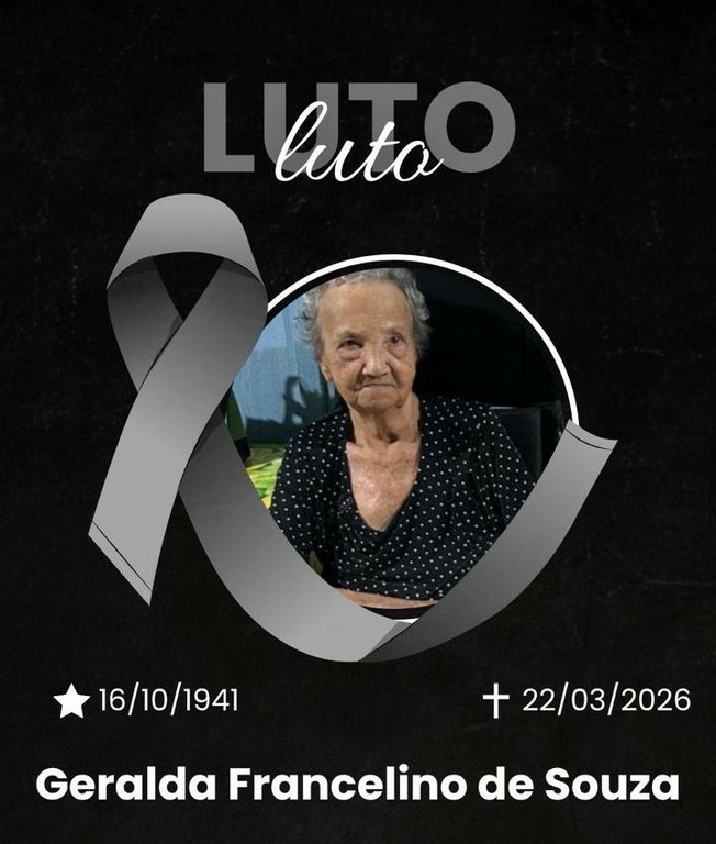 É com profundo pesar e muita tristeza que a Câmara Municipal de São Francisco do Guaporé comunica o falecimento da Sra. Geralda Francelino de Souza, mãe do nosso estimado Vereador Presidente Geferson dos Santos.